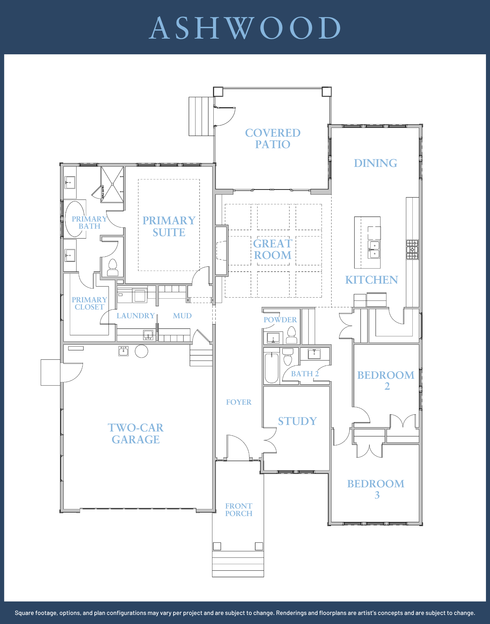 Dimensions, square footage, features, and configuration are subject to modification per build. Renderings and visual aids are the artist’s concepts and may change at any time without notice.