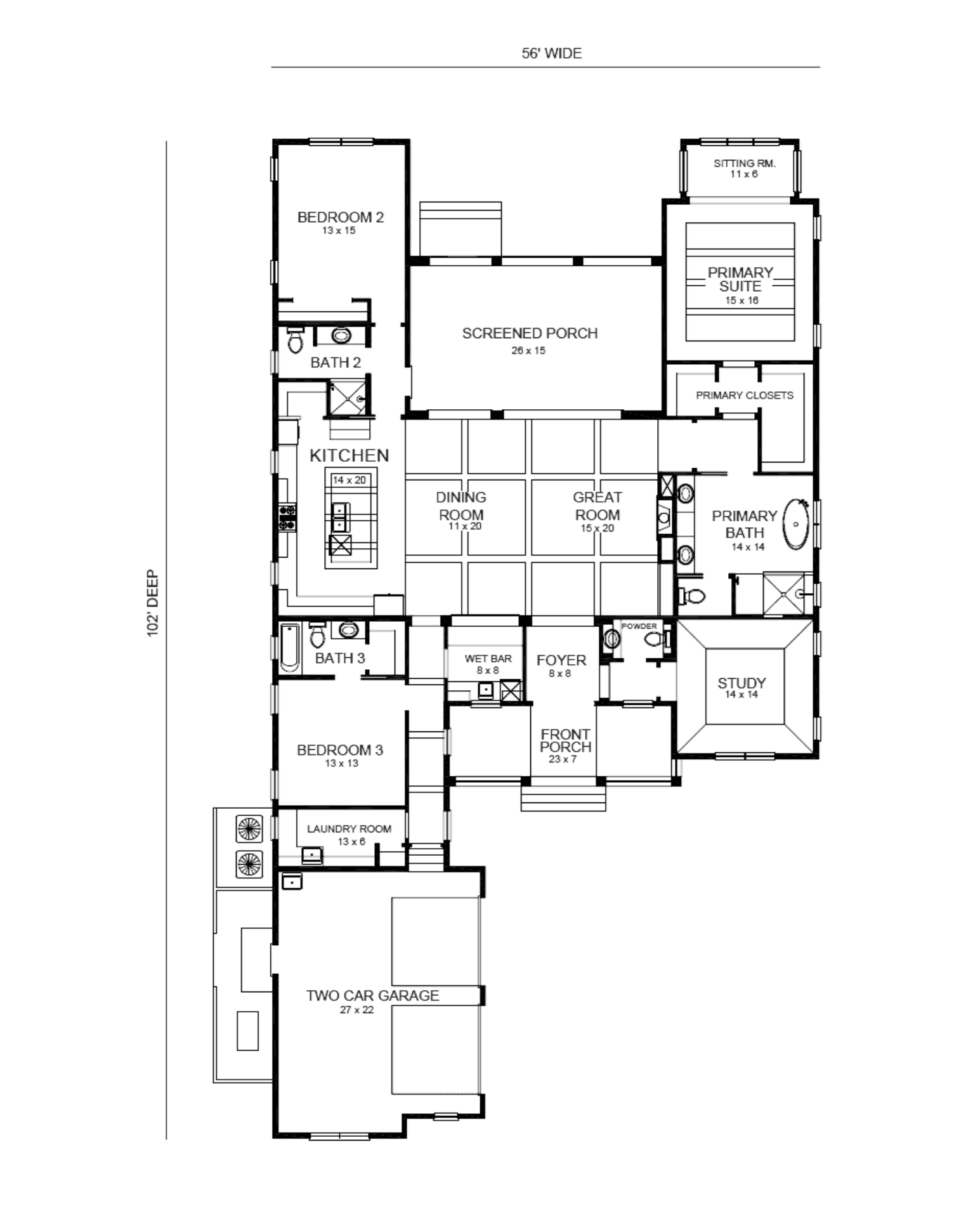 • Fully Customizable • Rear Covered Patio • Front Covered Porch • Study • Wet Bar • Open Layout Main Living Area