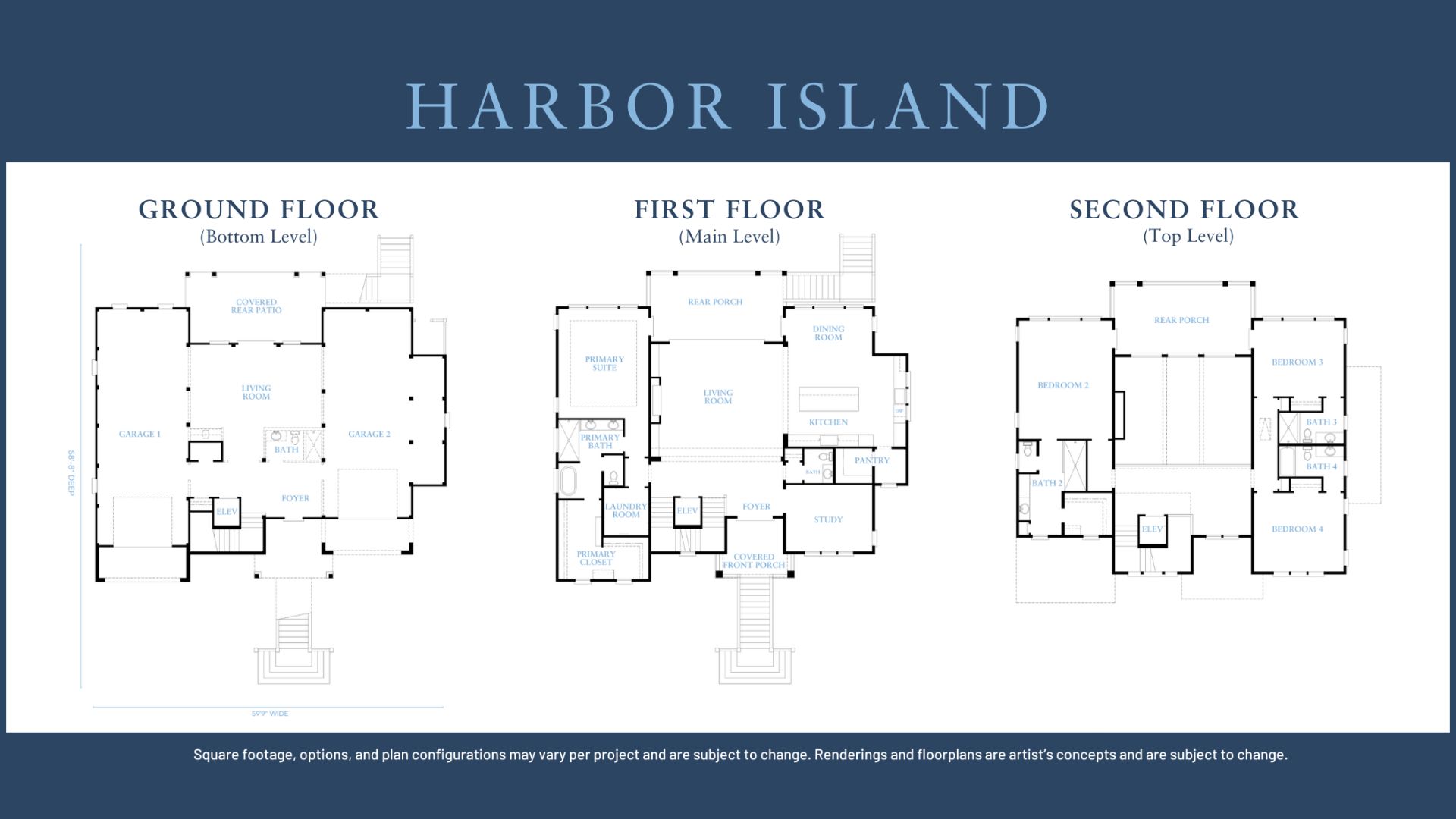 Dimensions, square footage, features, and configuration are subject to modification per build. Renderings and visual aids are the artist’s concepts and may change at any time without notice.