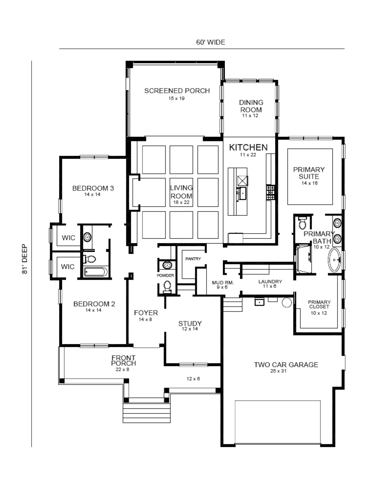 • Fully Customizable • Front Covered Porch • Rear Screened Porch • Study • Open Layout Main Living Area